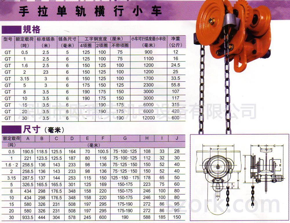 GT 手拉單軌橫行小車